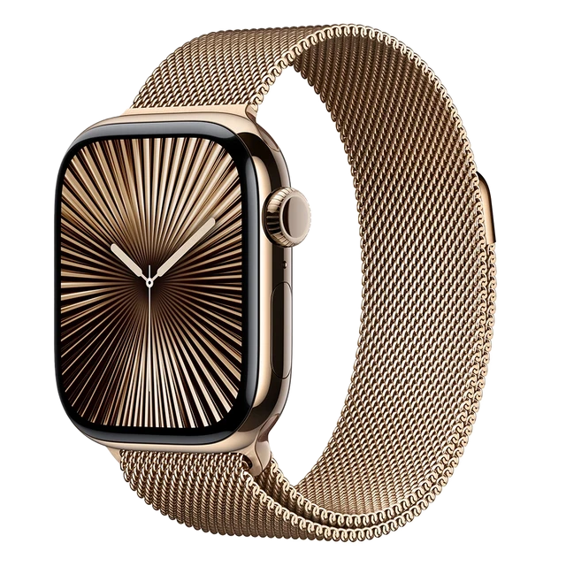 Apple Watch Series 10, 46 мм, корпус из титана цвета Пустынный титан, ремешок Стальной, цвет золотой (desert titanium)